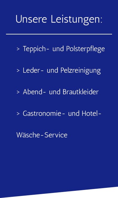 Neben Privatkunden arbeiten wir auch mit bekannten <Hotels> und <Gastronomien> zusammen. Da wir einen hohen Qualitätsstandard bieten, können wir zuverlässig und lukrativ den Anforderungen unserer Partner nachkommen. Wir versprechen eine professionelle und zeitnahe Reinigung Ihrer Textilien. Ziehen Sie auch eine Zusammenarbeit in Erwägung? Dann wenden Sie sich einfach an: